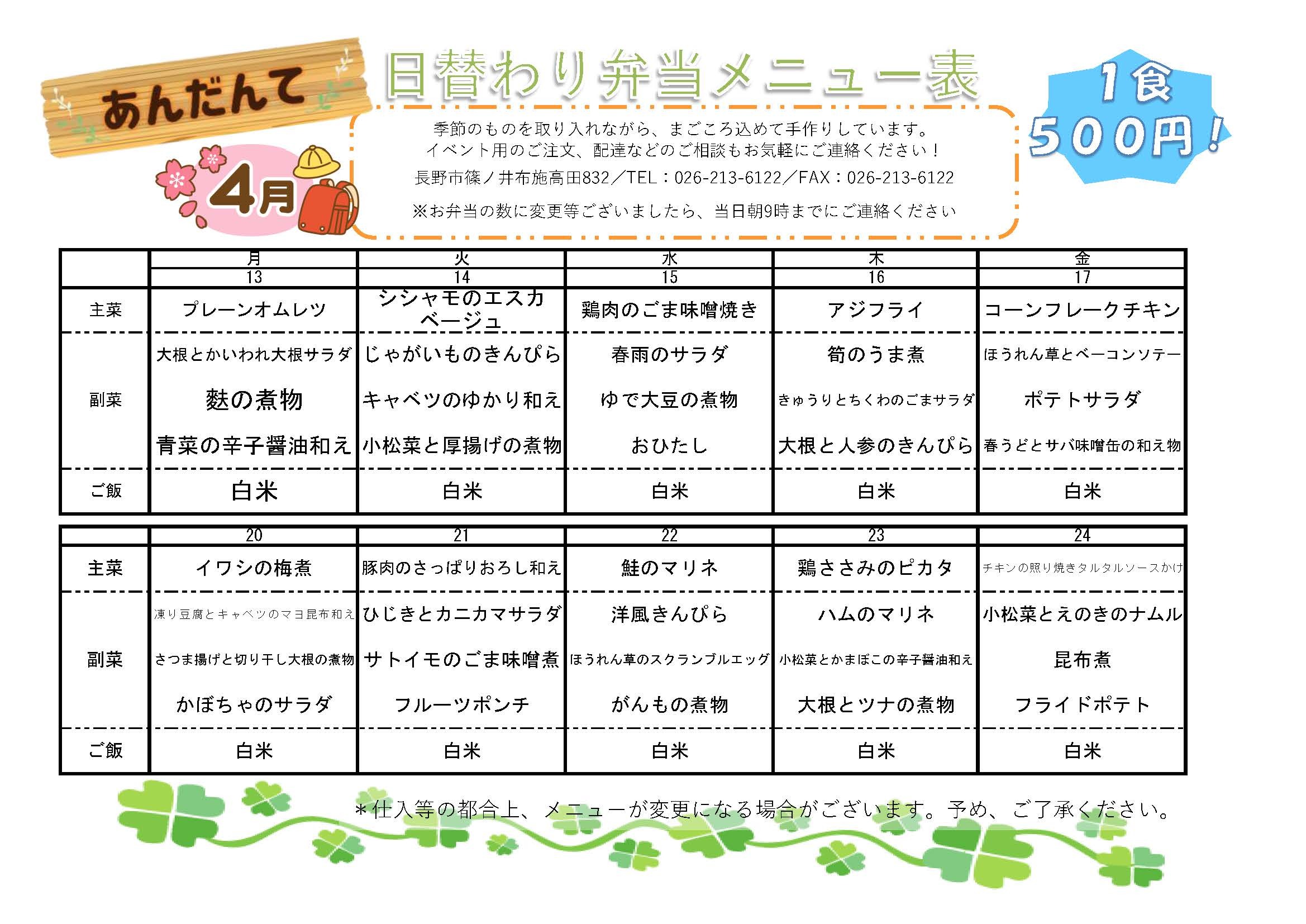 あんだんてでは、主菜、副菜ともに工夫を凝らしお弁当を作っております。