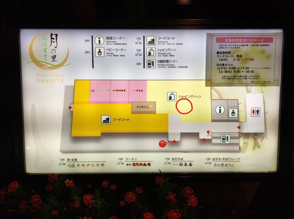 何でそんなに人気なのか、ドライブがてら姨捨サービスエリアに見に行ってみると、ショッピングゾーン入り口すぐ、一番目立つ場所に並べられていました(画像の赤丸の場所)。