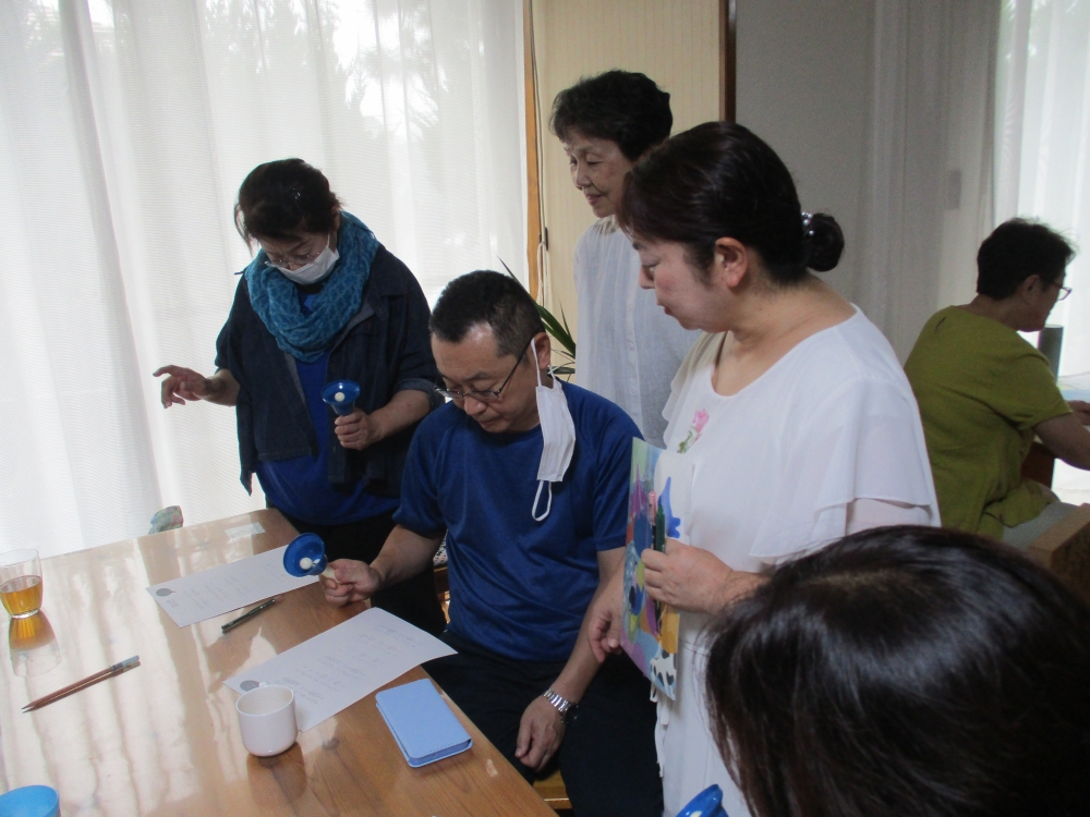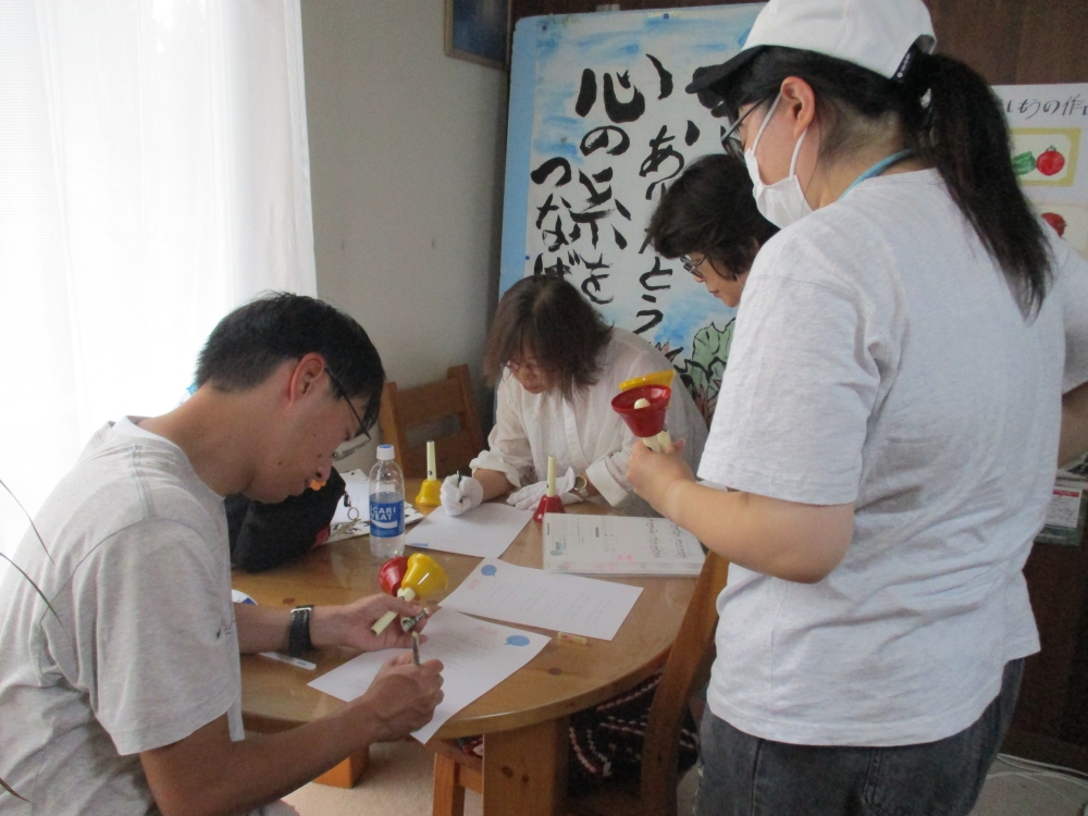 後半は全員で虫の声の演奏に挑戦しました。3人ずつのグループを作って担当の音を決めて、楽譜をみながらグループごと出番を確認して合奏をしました。