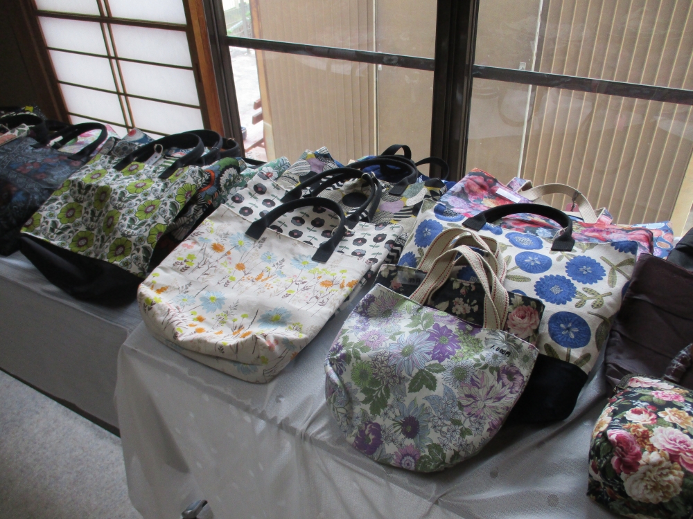 今回の展示ではお好きな花柄で作ったバッグやスマホケース、眼鏡ケースなどを展示販売します。