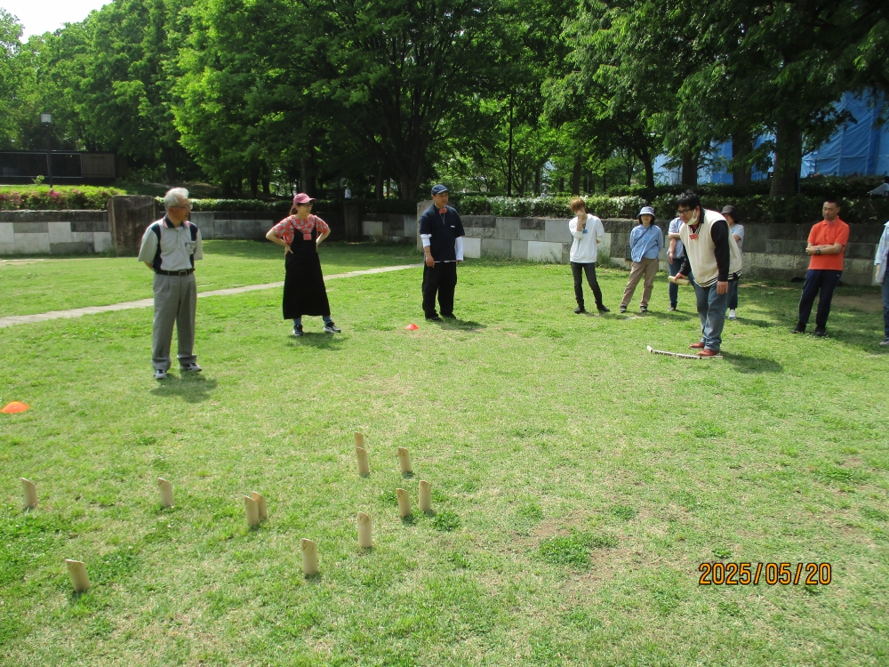 5月20日(火)に若里公園にて、シニア大学のみなさんとモルックを行いました。