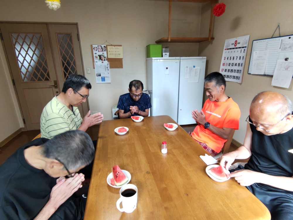 自分のすいかを持って、丁寧に「頂きます」をして、