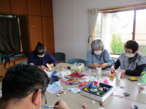 販売コーナーでは、今年も「だがし家らそ様」にご参加いただき、賑やかさを演出して頂きました。あらためて御礼申し上げます。また、法人内B型事業所からは感謝祭限定のものや普段なかなか買えない商品を販売したところ、「珍しい色の麺で面白いね」、「彩りがきれいなお菓子で春を感じるね!」といった感想をいただきました。買い物されたお客様が参加できるクジ引きでは、1等のお米をはじめ皆さん喜ばれていて、こちらも嬉しかったです。