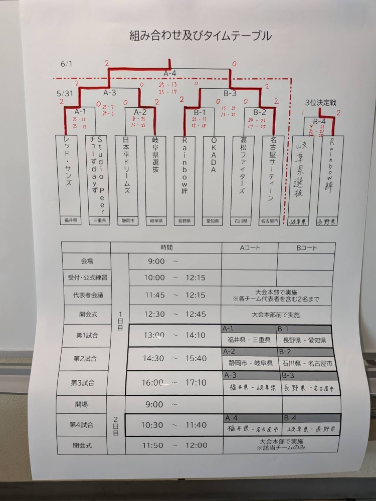 今日は岐阜県選抜チームとの3位決定戦が行われました。1セット目は三段攻撃を成功させながら順調に得点を重ねていきました。2セット目、接戦になりながらもあと一歩で相手にセットを取られました。