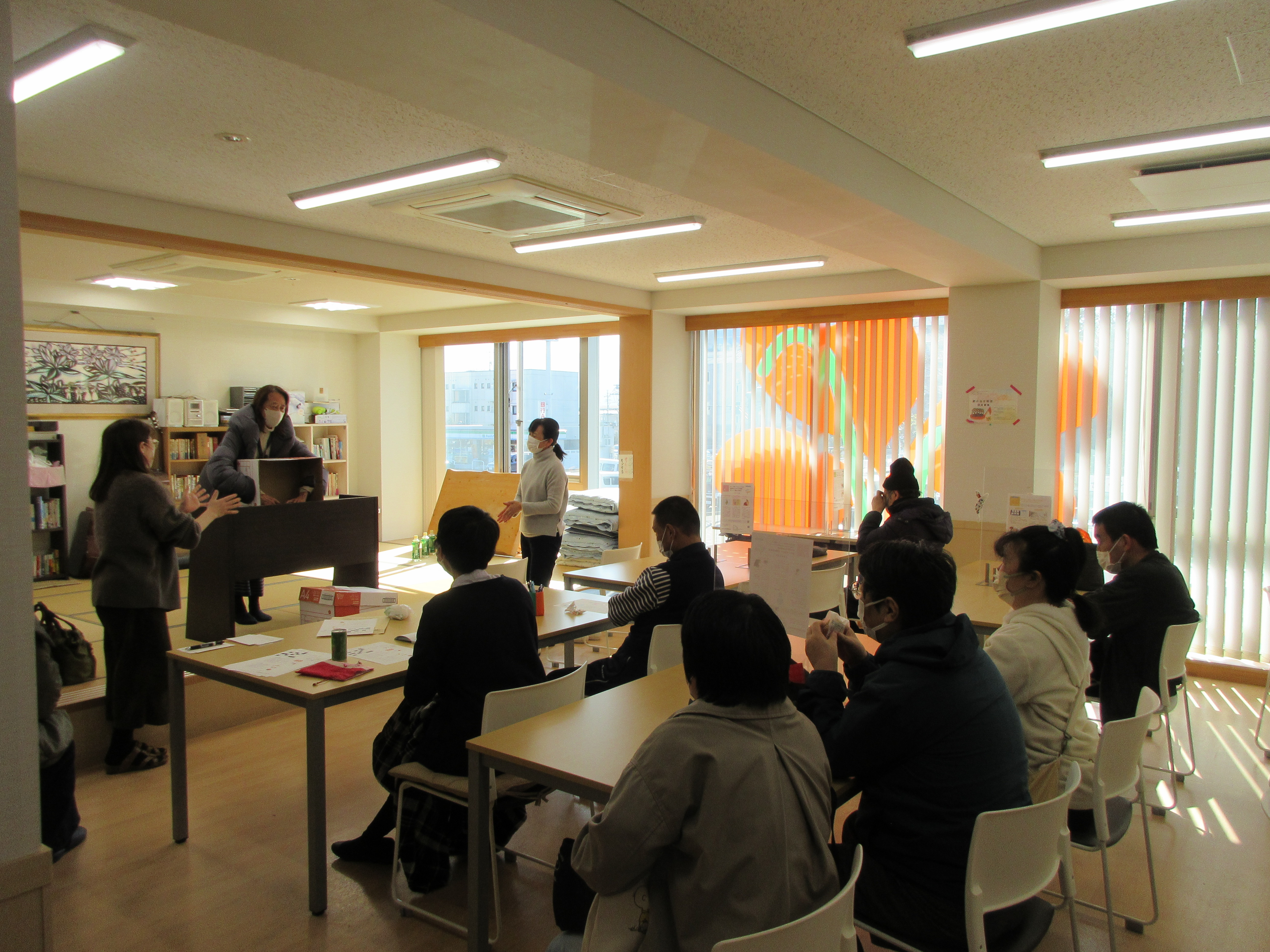 9時過ぎからメンバーと職員で準備を始め、見事なチームワークで開始10分前には準備完了。ワクワクしながら10時に開始したところ、次から次へと来客がありあっという間にスリッパが足りなくなりました。慌てて在庫を出していただき何とか継続、その後も人の流れは多く、3階の販売コーナーは大賑わいです!普段なかなか買えない商品もあるので、お客様も沢山買い物をされている様子。だがし家らそ様にもご参加いただき、駄菓子コーナーは子どもから大人まで大人気でした。