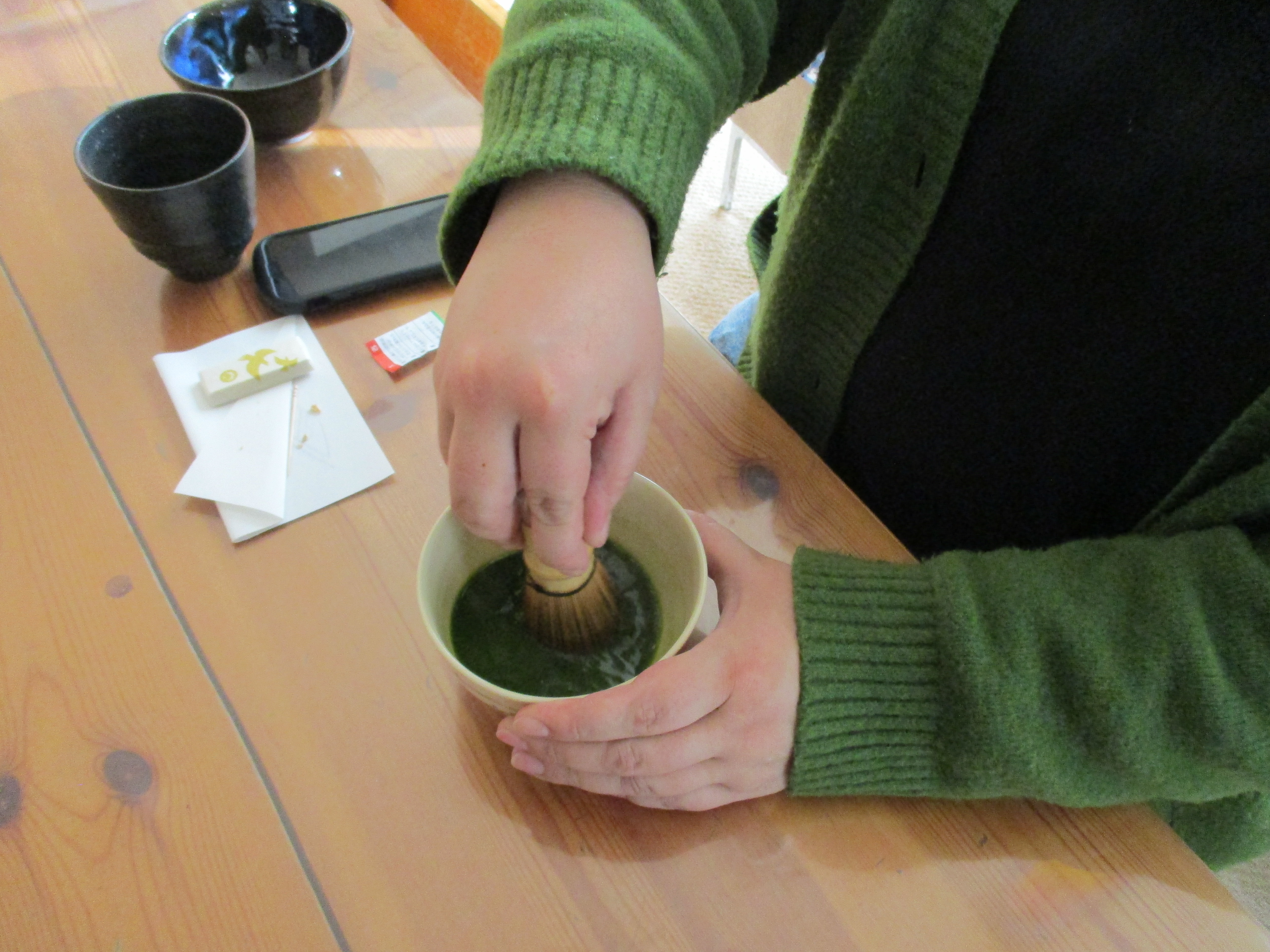 お抹茶にはまり「楽しい~」と言いながら上手にお茶を点てていたSさん。スタッフの分も美味しいお茶を点ててくれました。