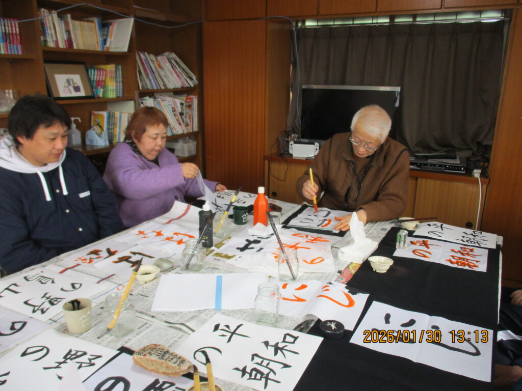 ○久しぶりの習字で最初はなかなかうまく書けませんでしたが、