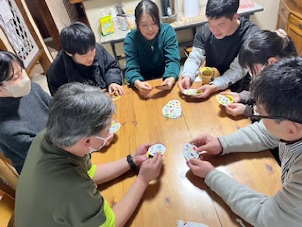 県立長野大学の坂本さんがプレゼンターを務めるボードゲームが開催! 2025 12/26 行事 2025年12月26日 05:30 ボードゲームの日として、大学生の坂本さんが企画してくれました。 他にも坂本さんの友達も2名参加して大変賑やかに出来ました。 メンバーも4人くらいで参加できたので楽しかったです。 いろんなボードゲームがあるのだと勉強にもなりました。また機会があれば参加したいです。 オレンジ若里 福島龍珠 行事 よかったらシェアしてね! URLをコピーしました! URLをコピーしました! 大掃除をしました! みらいコーポ稲葉 手作りケーキで“Xmas” この記事を書いた人 社会福祉法人 絆の会 関連記事 季節のお茶会 ~ねぎせんべい~ 2026年1月15日 18:03 お抹茶でお茶会 2026年1月9日 14:36 【新年会】繁忙期を乗り越えて!イオンモール須坂へ遊びに行ってきました 2026年1月9日 08:09 新年のご挨拶回りに行ってきました 2026年1月7日 08:56 【地元に支えられて】大晦日、笑顔で手渡す「年越しそば」 2025年12月31日 15:30 【全国へ、想いを込めて】一生懸命が繋いだ新しいご縁と、遠くへ届く「きずな」の味 2025年12月31日 14:15 リアン松岡〜みんなでクリスマス 2025年12月30日 16:36 みらいコーポ稲葉 手作りケーキで“Xmas” 2025年12月26日 06:11