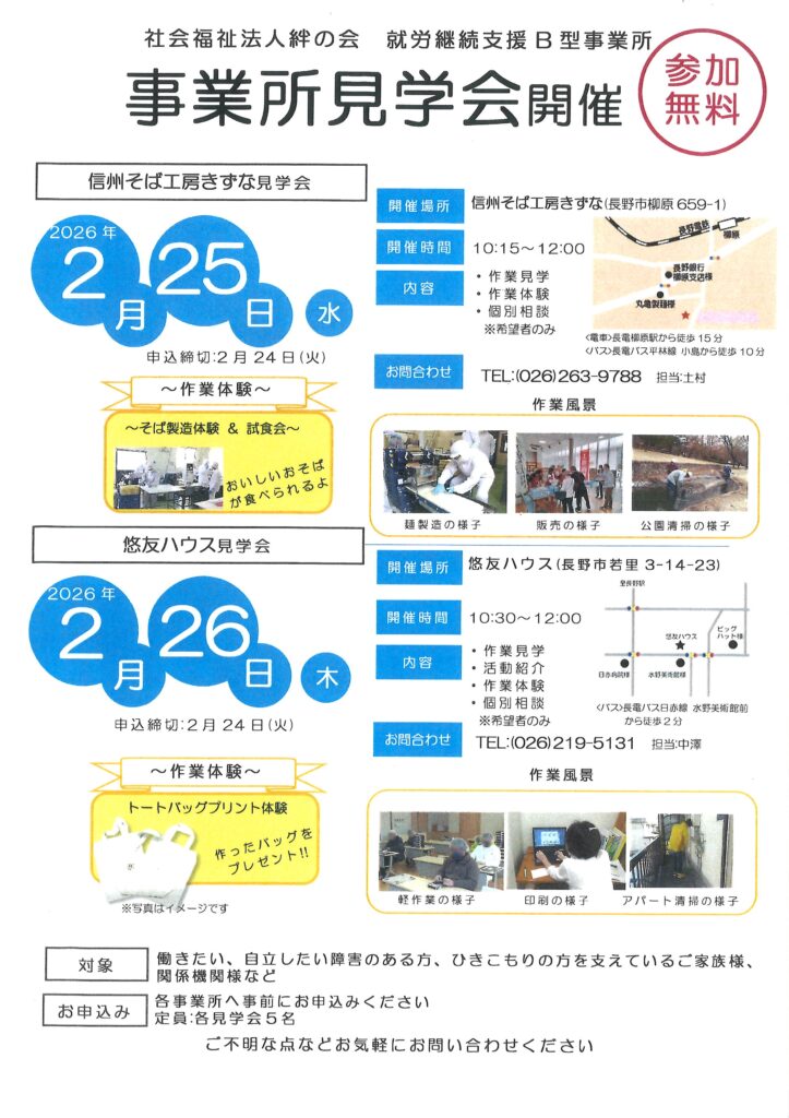 【参加無料】2026年2月 事業所見学会開催のお知らせ