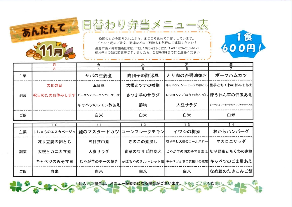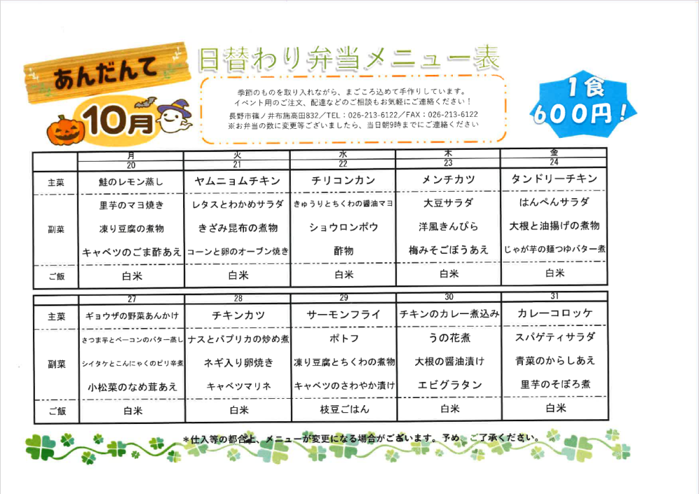 あんだんて最新お弁当メニュー表