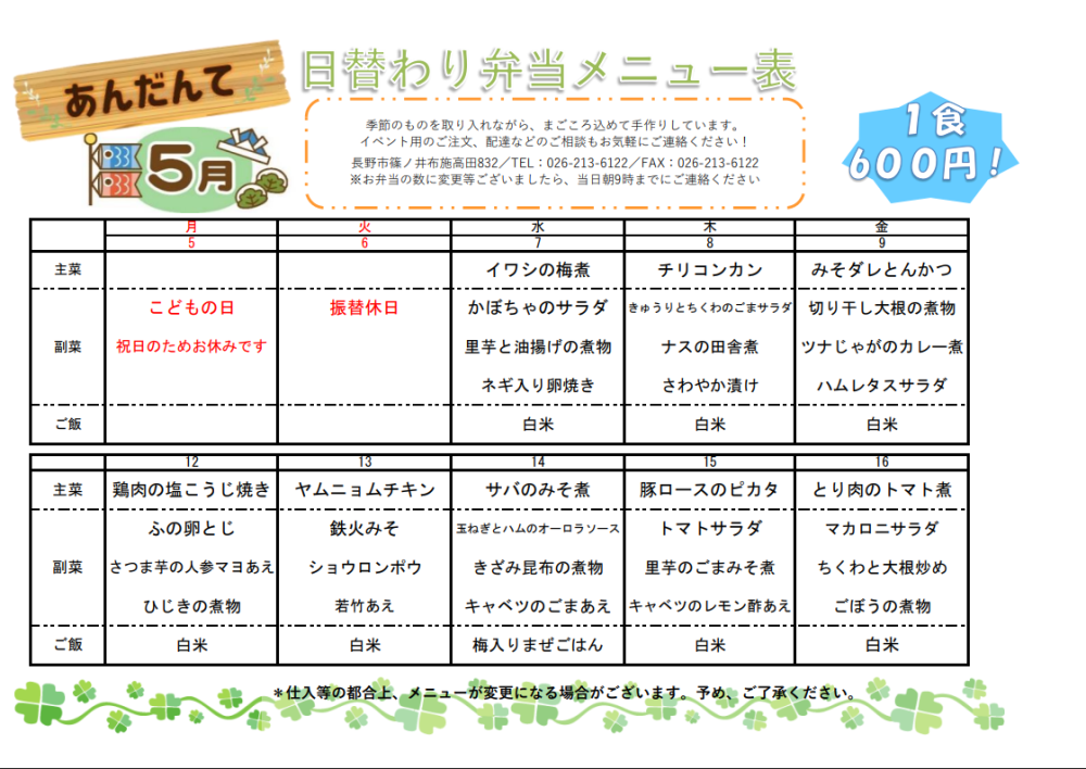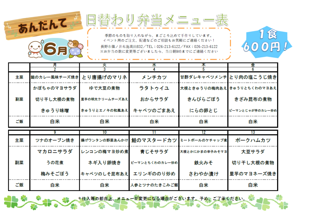 あんだんてより最新お弁当メニューのお知らせです 来週もみなさまのご利用をお待ちしております あんだんて 松本 -