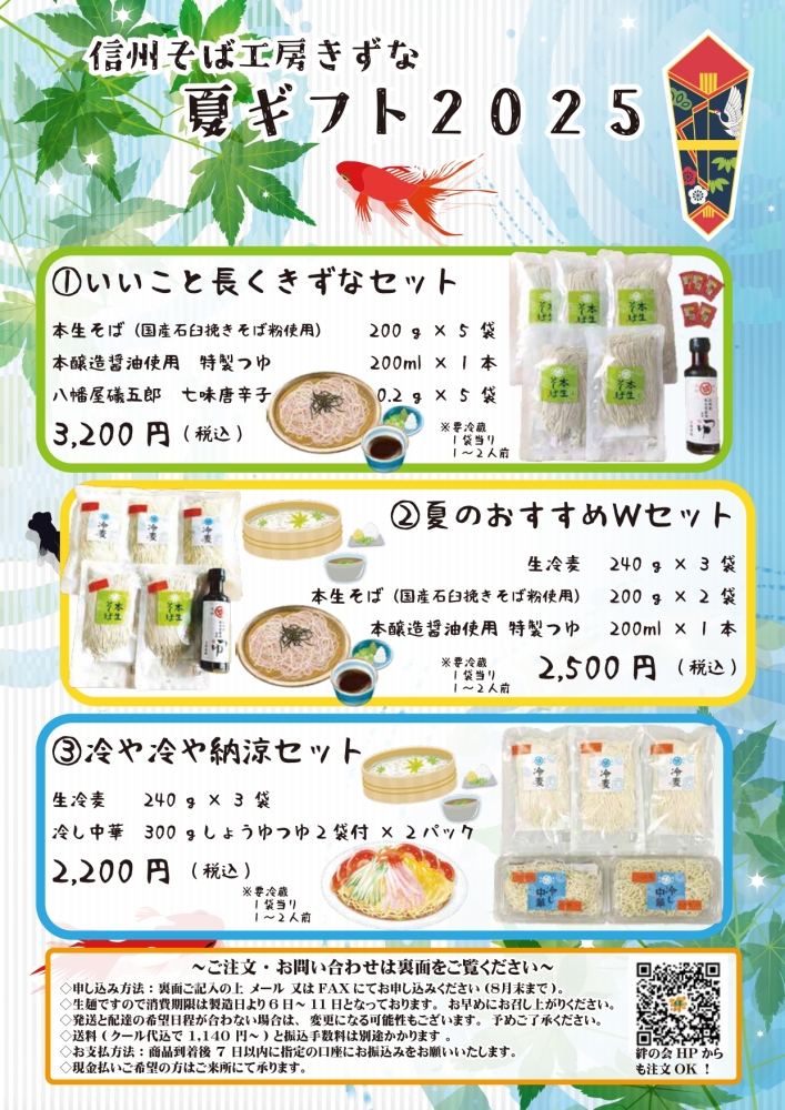 今年もそば工房では夏ギフトの製造がはじまりました。 写真のようなパッケージで、茶袋に入れてお届けします。 ギフトの内容は以下の3つからお選びください。 ①いいこと長くきずなセット 国産石臼引きの本生そば5袋 きずなのそばに合うよう開発したオリジ... -