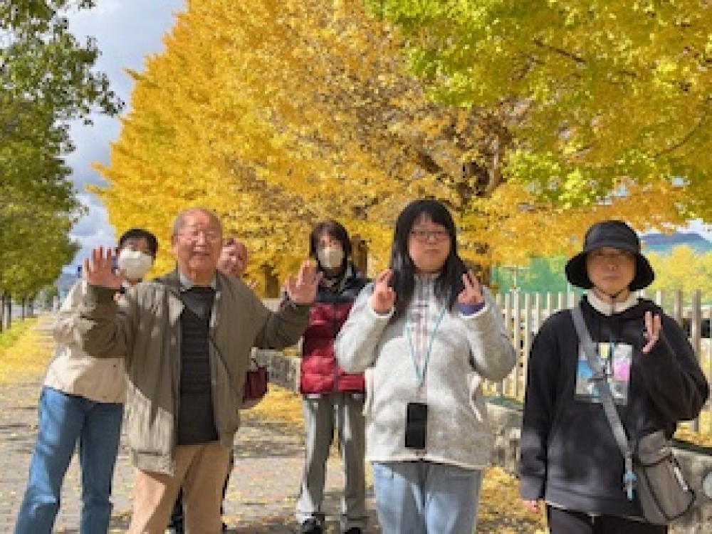 澄み渡る晴れた日、オレンジ若里のお隣の信州大学工学部へ秋の散策に出かけました。 黄色に染まった銀杏並木道に秋を感じました。 信州大学の学生に、大学のおすすめスポットを教えてもらいました。また、学食を案内してもらい、みんなでお昼を美味しくい... -
